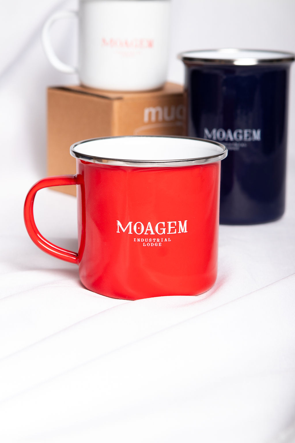 380 ml red stainless steel mug with Moagem logo. Retro design combining durability and subtle charm, perfect for carrying morning elegance wherever you go.