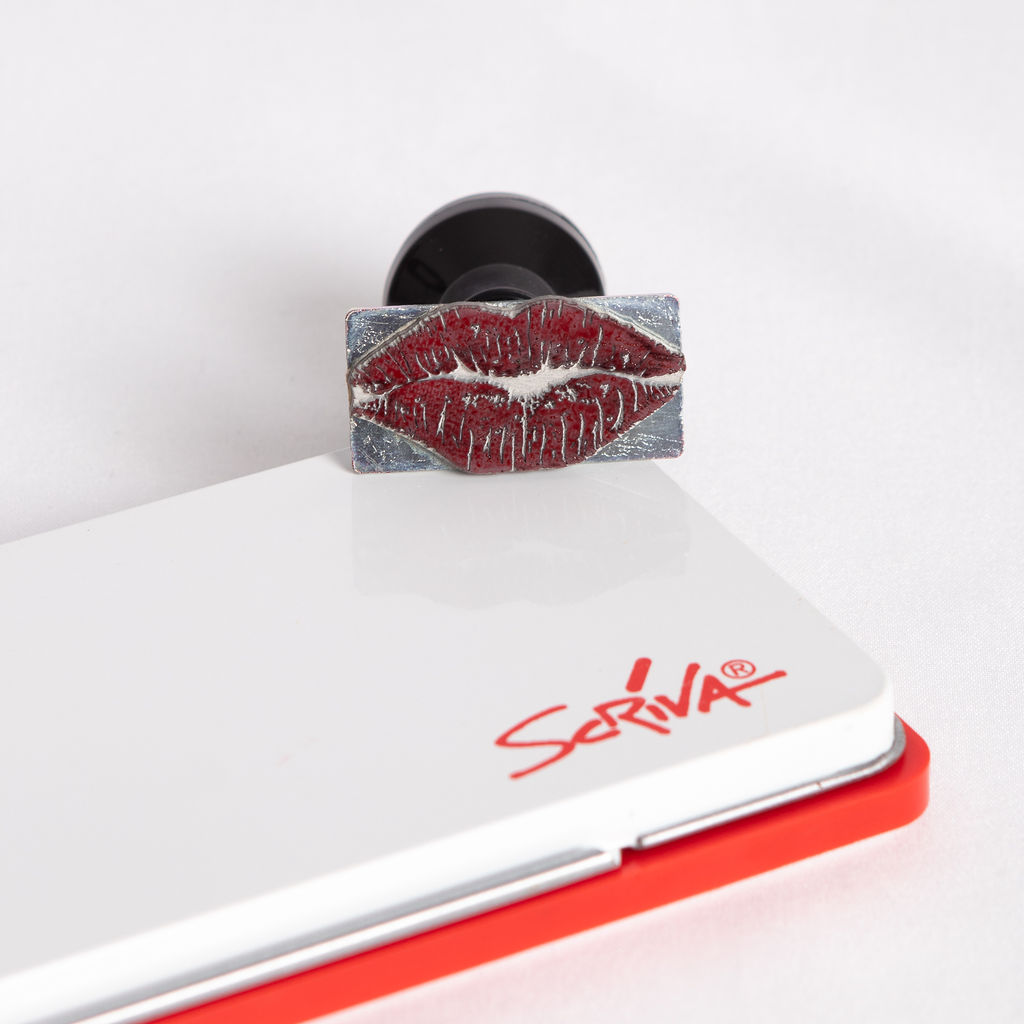 Traditional metal stamp with red ink. Leave Madame’s kiss on any page — or the right person.
