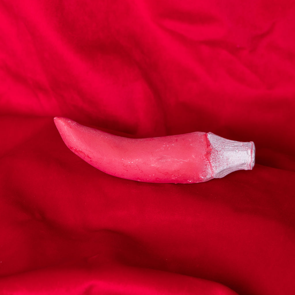 Peça de gesso em forma de malagueta com mensagem oculta. Ao abrir, experimenta a excitação que percorre todo o corpo, da cabeça aos pés, aumentando o ritmo cardíaco e provocando contrações rítmicas. Um passo intenso, que faz a noite ganhar calor.
